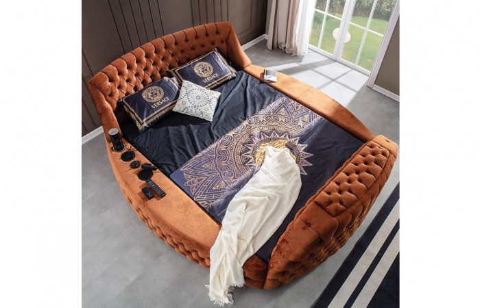 Fontanne Fonksiyonel Masajlı Ses Sistemli Karyola Yatak Odası Fontanne Fonksiyonel Masajlı Ses Sistemli Karyola içeriğinde; Tasarım led aydınlatma, Yatak başında gizlenebilen sehpa, Okuma lambası, Kullanışlı yan açılır kapaklı sandık ve çekmeceler, Ayak uçunda Tv modülü, Sandık baz..