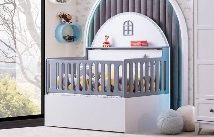 Yan ek çekmeceli Bebek sağlığına uygun Asansörlü büyüyen beşik İç yatak fiyata dahil değildir İç yatak 7..