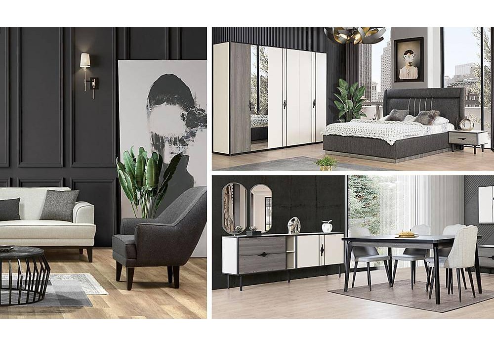 Pera Yatak Odası; 6 kapılı gardrop - bazalı karyola ve başlık - şifonyer ve aynası - 2 adet komodinden oluşmaktadır Pera Yemek Odası; -izmir mobilya
