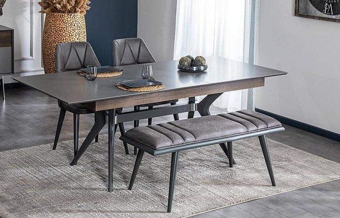 Adero Mutfak Masa Takımı Yemek Masası Adero mutfak masa takımı, modern çizgileri ve konforu ile ön plana çıkan mobilyalardan biridir. Adero mutfak masa takımının içeriğinde açılır masa, 2 adet sandalye ve bench bulunmaktadır. Üretimi sırasında mdf ve ağaç ku..