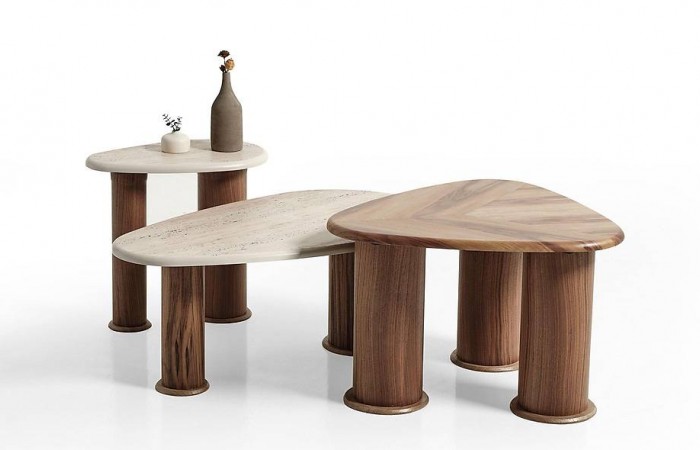 Perge Zigon Sehpa - Ceviz Sehpa ve Aksesuar Ürün Ölçüleri Genişlik Yükseklik Derinlik Zigon Sehpa 55/48/41 55/51/47 40/40/40 Ürün Ölçüleri Genişlik Yükseklik Deri..