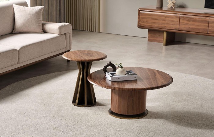 Barker Orta Sehpa Seti Sehpa ve Aksesuar Sıcak ve samimi yaşam alanlarına eşlik eden Barker orta sehpa seti, farklı tarzı sayesinde modern yaşam alanları için tercih edilebilecek en ideal ürünlerden biridir. Barker orta sehpa seti; elips sehpa, yuvarlak puf..