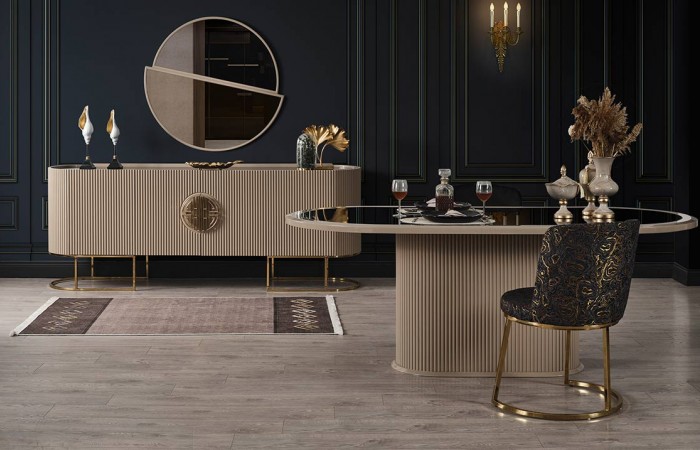 Gloria Yemek Odası Yemek Odası Gloria Yemek Odası; Konsol ve aynası - yemek masası ve 6 adet sandalye takım fiyatına dahildir Takımdan istediğiniz modülü tek olarak sipariş verebilirsiniz. Ürün ölçüleri aşağıda belirtilmiştir 4 kapaklı..