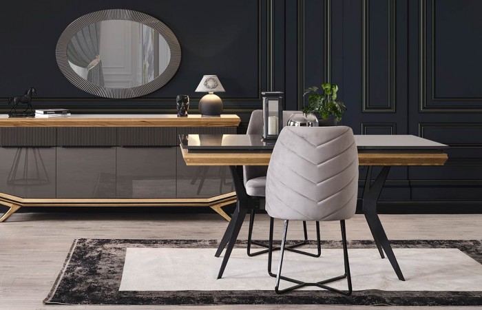 Gucci Duman Grisi Metal Ayaklı Yemek Odası Takımı Yemek Odası Özel İnegöl üretimi Gucci Duman Grisi Yemek Odası Takımı. Gümüş metal ayaklar, yüksek kaliteli MDF ve modern tasarım bir arada. Hemen SivrilerMobilya.com'dan sipariş verin!Ürün MDF malzeme ile üretilmiştir., Ayaklar Meta..