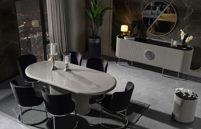 Fujinso Yemek Odası Takımı Yemek Odası Ürün Adı Genişlik Derinlik Yükseklik Fujinso Konsol 240 cm 55 cm 85 cm Fujinso Masa 220 cm 100 cm 75 cm Fujinso Konsol Aynası..