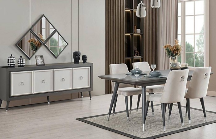 İzmit Gri Yemek Odası Yemek Odası İzmit Yemek Odası; Konsol ve aynası - açılır yemek masası ve 6 adet sandalye takım fiyatına dahildir Takımdan istediğiniz modülü tek olarak sipariş verebilirsiniz. Ölçüler aşağıda belirtilmiştir Açılır yem..