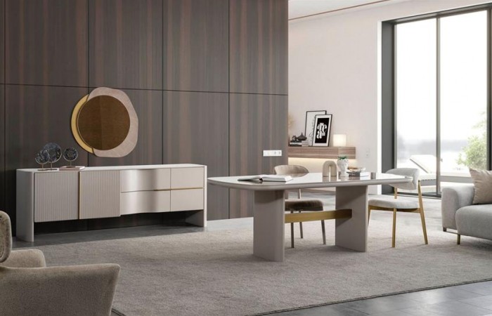 Javed Yemek Odası Takımı Yemek Odası Ürün Adı Genişlik Derinlik Yükseklik Javed Konsol 240 cm 50 cm 78 cm Javed Masa 220 cm 100 cm 80 cm Javed Sandalye 60 cm..