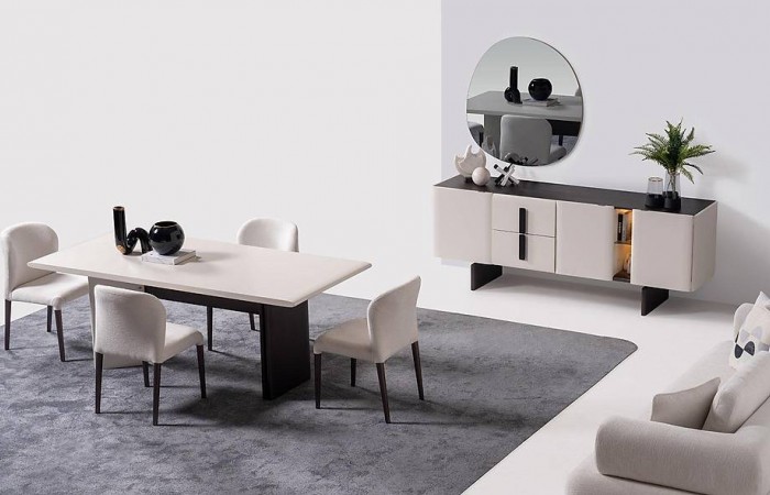 Limerence Yemek Odası Takımı Yemek Odası Ürün Adı Genişlik Derinlik Yükseklik Badwins Konsol 220 cm 50 cm 75 cm Badwins Masa 220 cm 110 cm 76 cm Badwins Konsol Aynası..
