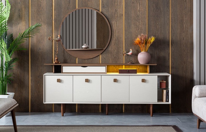 Palermo Yemek Odası Yemek Odası Ürün Ölçüleri Genişlik Yükseklik Derinlik Konsol ve Ayna 203 83 44 Yemek Masası 160 79 90 Tv Ünitesi 199 58 44..