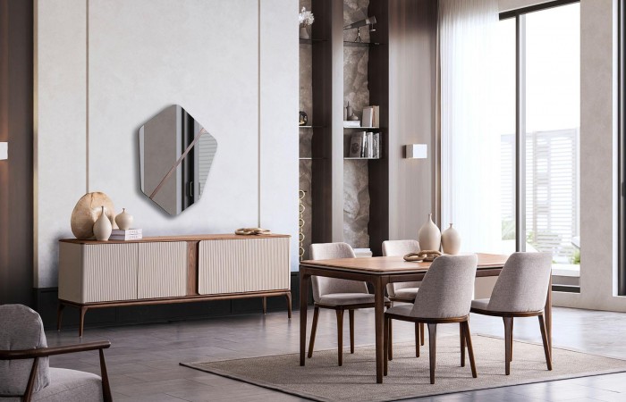 Remi Yemek Odası Takımı Yemek Odası Ürün Adı Genişlik Derinlik Yükseklik Remi Konsol 225 cm 52 cm 85 cm Remi Masa 208 cm 100 cm 79 cm Remi Konsol Aynası cm..