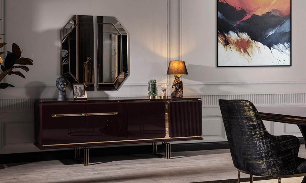 Bergama Mürdüm Metal Ayaklı Yemek Odası Takımı Yemek Odası