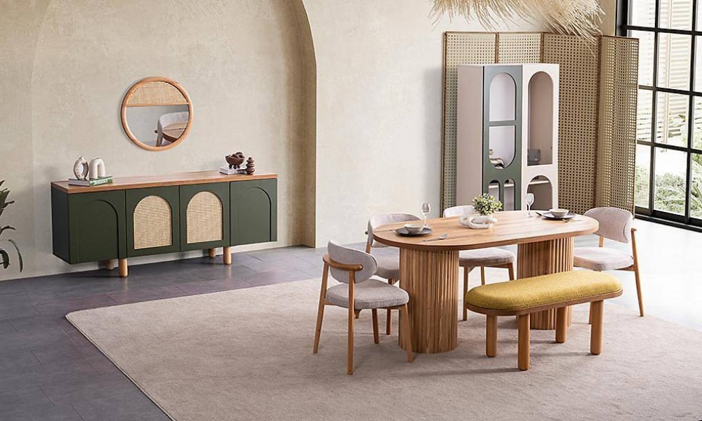 Arın Yemek Odası Yemek Odası Ürün Ölçüleri Genişlik Yükseklik Derinlik Konsol ve Ayna 201 83 46 Yemek Masası 190 80 90 Bench 125 50 46 Tv Sehpası